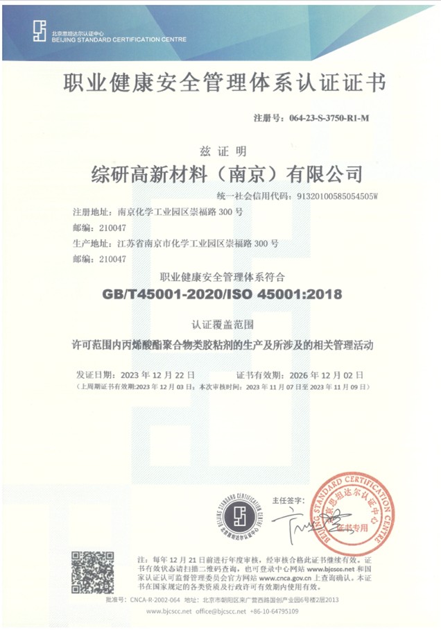 ISO45001环境管理体系认证证书-职业健康